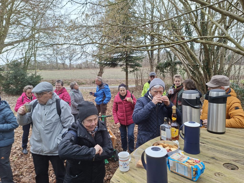 (An Organisation und Vorbereitung waren beteiligt: Angela W, Angelika Hs, Carola K, Günther L, Monika B, Rose Maria S. Ein Dank geht an Lisa und Hinrich M für den Bollerwagen; an Günther L für die Boßelkugeln und an Klemens W für den Weißweinpunsch. Und ein dickes Lob an Angelika Hs für die souveräne Leitung während Boßeltour.)