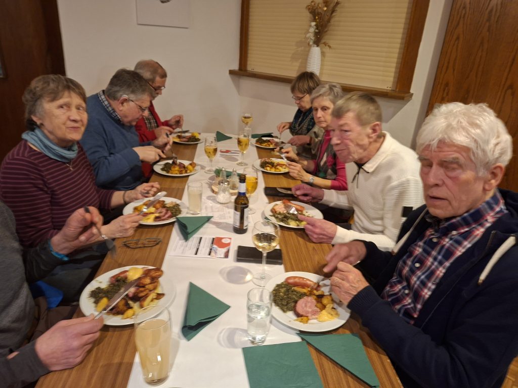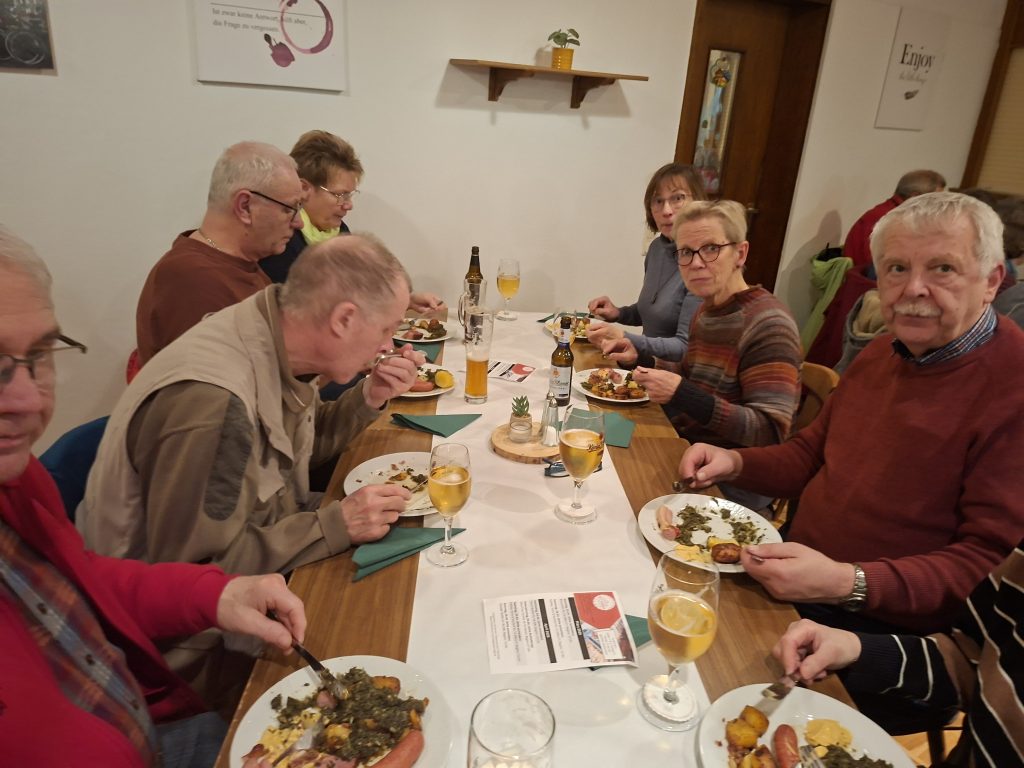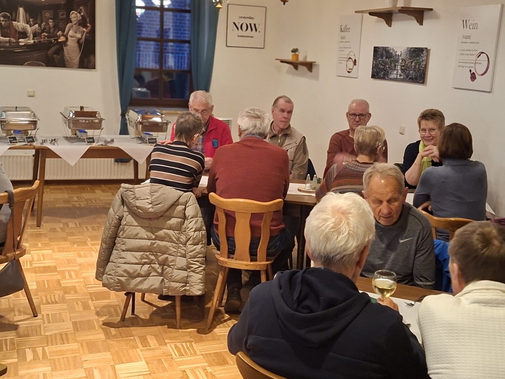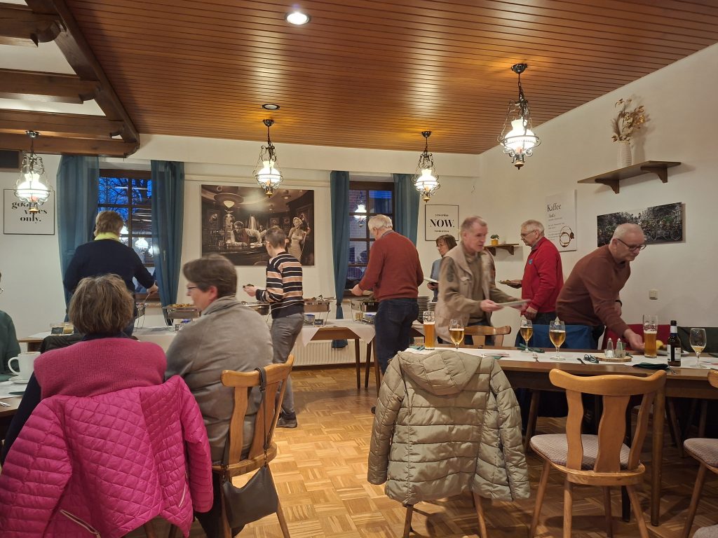 Noch wichtiger als Speis´ und Trank waren die vielen Gespräche bei bester Laune. Endlich mal wieder Mitglieder treffen, die man wochen- oder gar monatelang nicht gesehen hat. Ob über die Erlebnisse des letzten Jahres, die bevorstehenden Touren der vorausliegenden Saison oder ganz andere persönliche Themen – Gesprächsstoff gab es genug. – Mehr als einmal hörte man zum Schluss: „Das müssen wir mal wiederholen.“ Gerne … im nächsten Jahr.