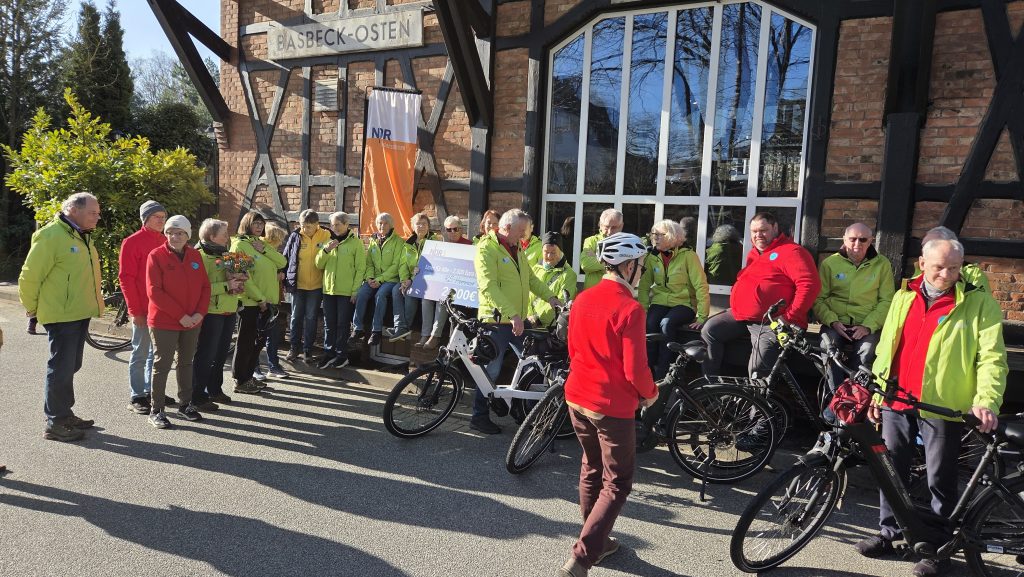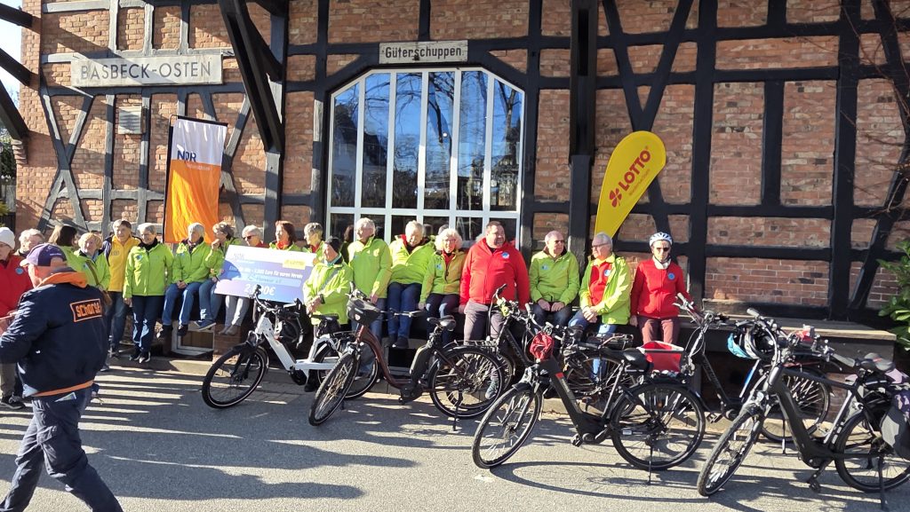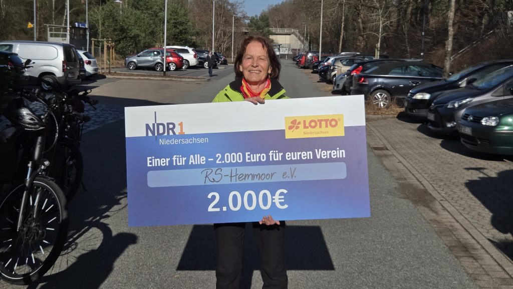 Freitag Morgen kurz nach 07:00 Uhr: Handy klingelt – Festnetz klingelt … und nicht nur einmal. Was war passiert? Radsportmitglied Angelika Hensel hatte sich vor Wochen mit Vereinsnamen bei der Aktion von NDR1 „Einer für alle“ beworben. Die Aufgabe: Bei der morgendlichen Verlosung muss der/die Gezogene innerhalb von 2 Musiksongs beim Sender anrufen. Schafft er/sie es, gewinnt der Verein 2.000 Euro. Ruft er/sie zu spät oder gar nicht an, verfällt der Gewinn. Und an diesem Freitag war es soweit: Angelika wurde als Gewinnerin gezogen – nun aber schnell ans Telefon. Auch viele andere Hörer bekamen die Ziehung mit und wollte Angelika unbedingt und sofort informieren. Doch da hatte sie schon lange den Hörer in der Hand und den NDR an der Strippe. „Ich war ganz schön aufgeregt – aber der Gewinn ist gesichert!“.